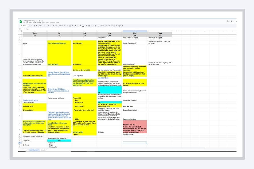After you’ve built your itinerary, confirmed your group, and assigned roles, it’s time to lock in the details: how people are getting there, where they’re staying, and what activities they’re actually doing.