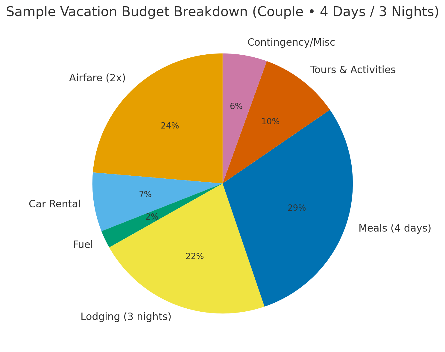 Pie chart showing sample vacation budget for a 4-day couple’s trip